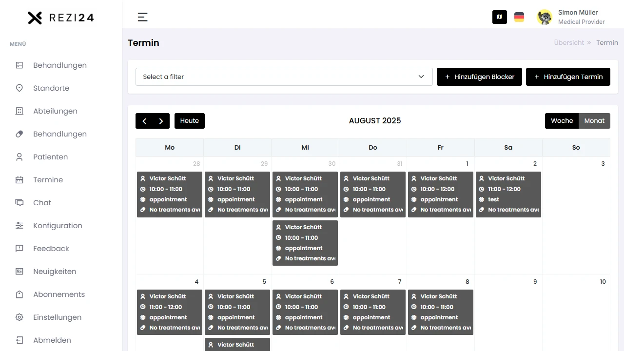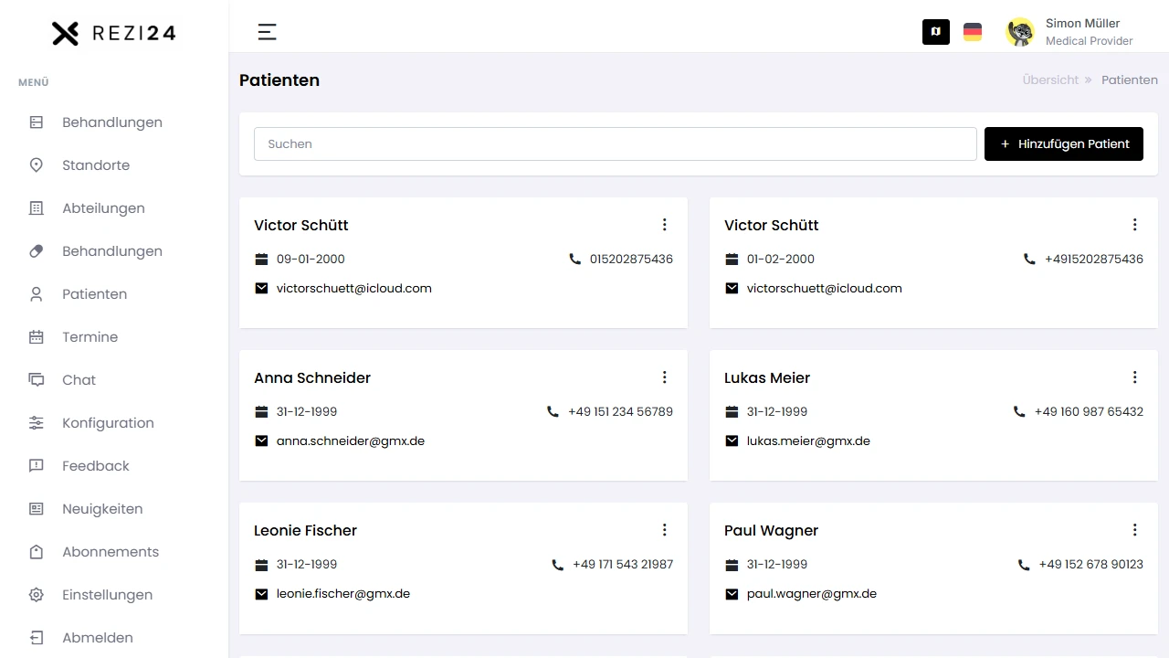 Rezi24 ist eine digitale Rezeption, die patientennahe Aufgaben wie Terminvereinbarungen, Anfragen und Dokumentenupload automatisiert übernimmt – direkt auf Ihrer Website oder per Touchscreen in Ihrer Praxis.